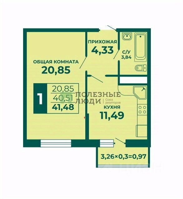 Общая площадь: 41 5 м²