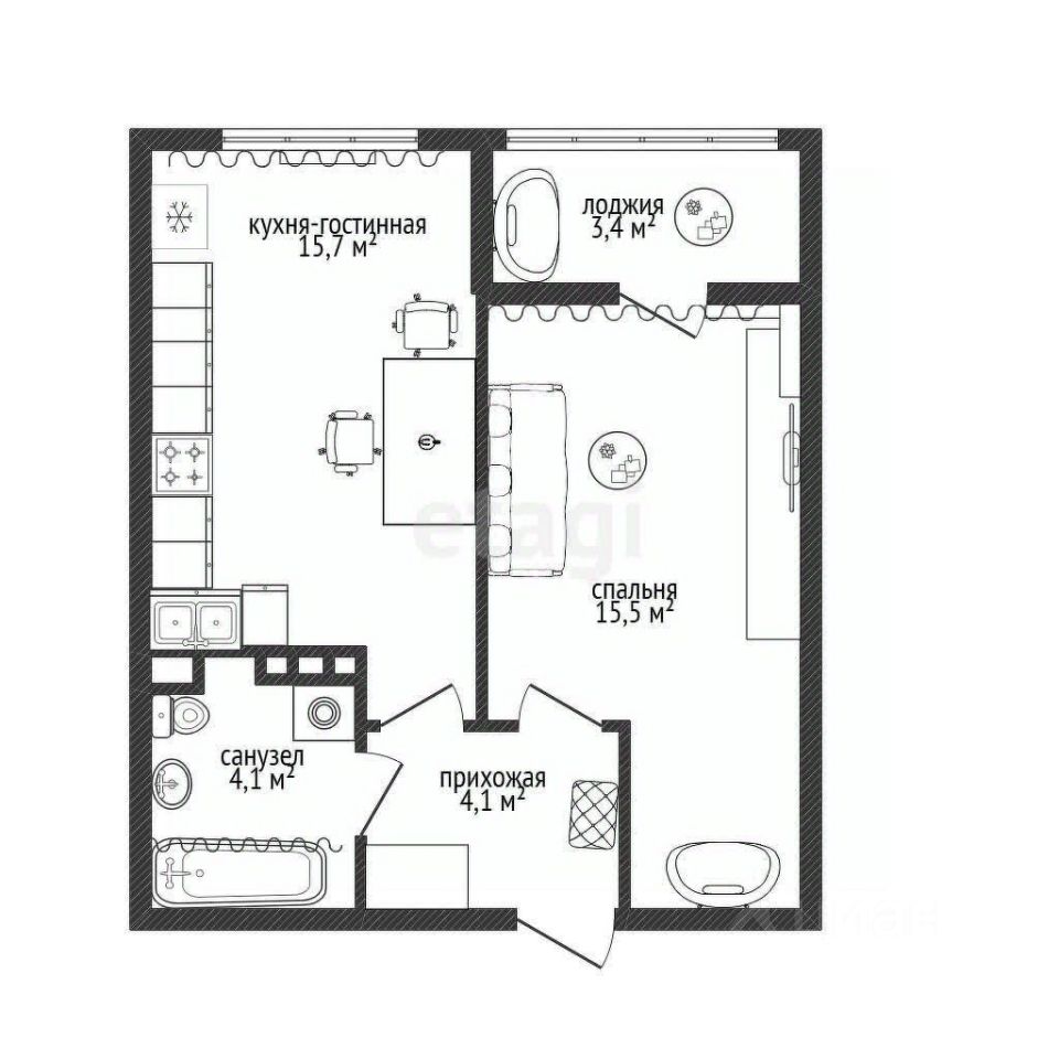 15,7 м²