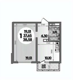 Общая площадь38,58 м²