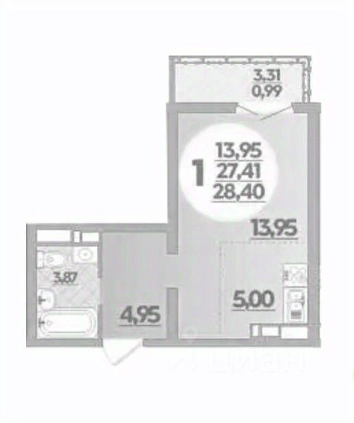 Общая площадь28,4 м²