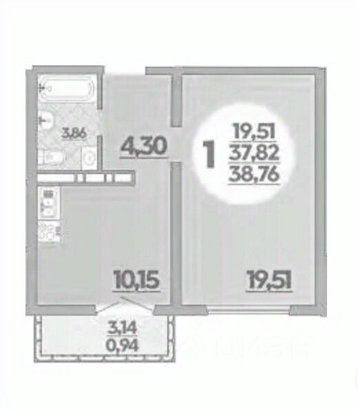 Общая площадь38,76 м²
