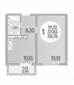 Общая площадь38,76 м²