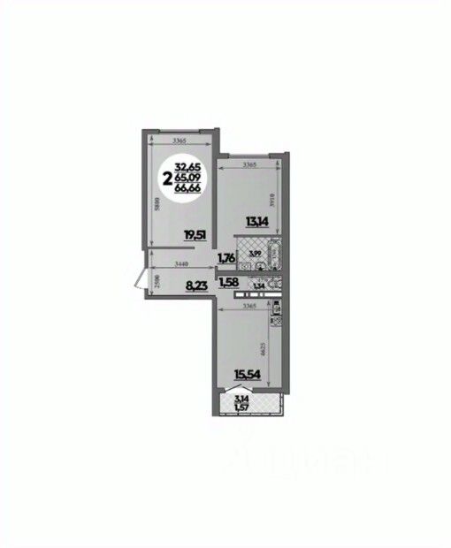 Общая площадь66,66 м²