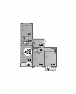 Площадь кухни19 м²