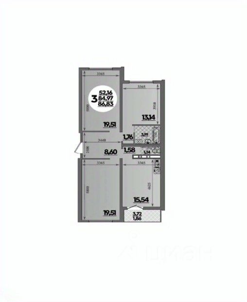 Общая площадь86,83 м²