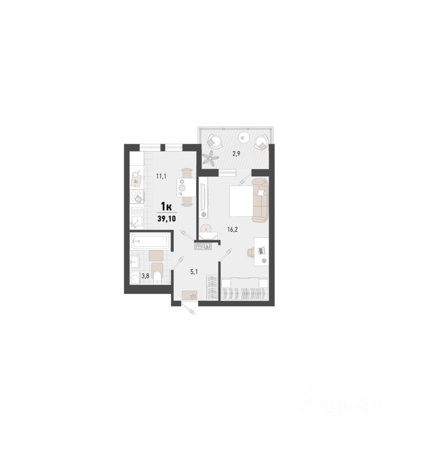 Общая площадь39,1 м²
