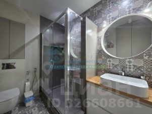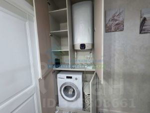 В ванной комнате просторная душевая кабина, установлен водонагреватель, стиральная машина и есть места хранения.