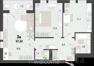 Общая площадь57,5 м²