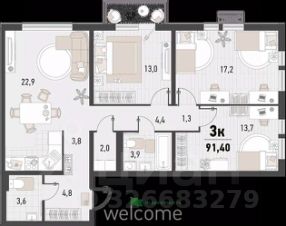 Продается 3-комн. квартира, 91,4 м²