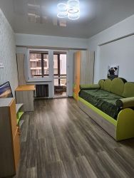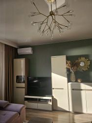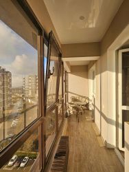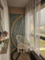 В квартире предусмотрены большие панорамные окна, которые наполняют пространство естественным светом. Лоджия застеклена и обустроена для отдыха.