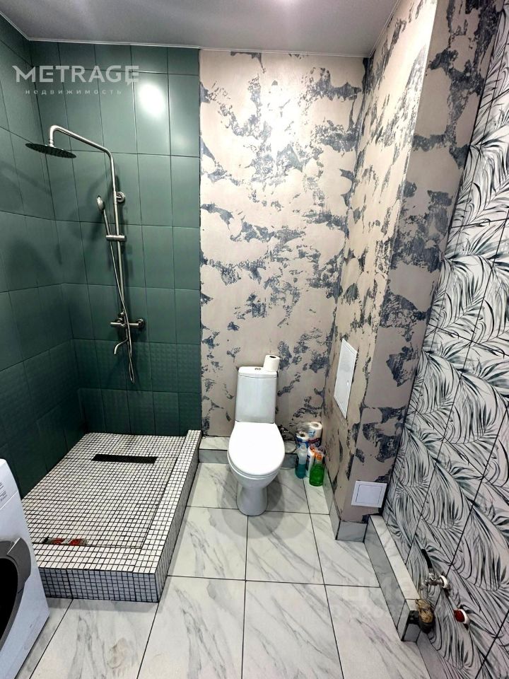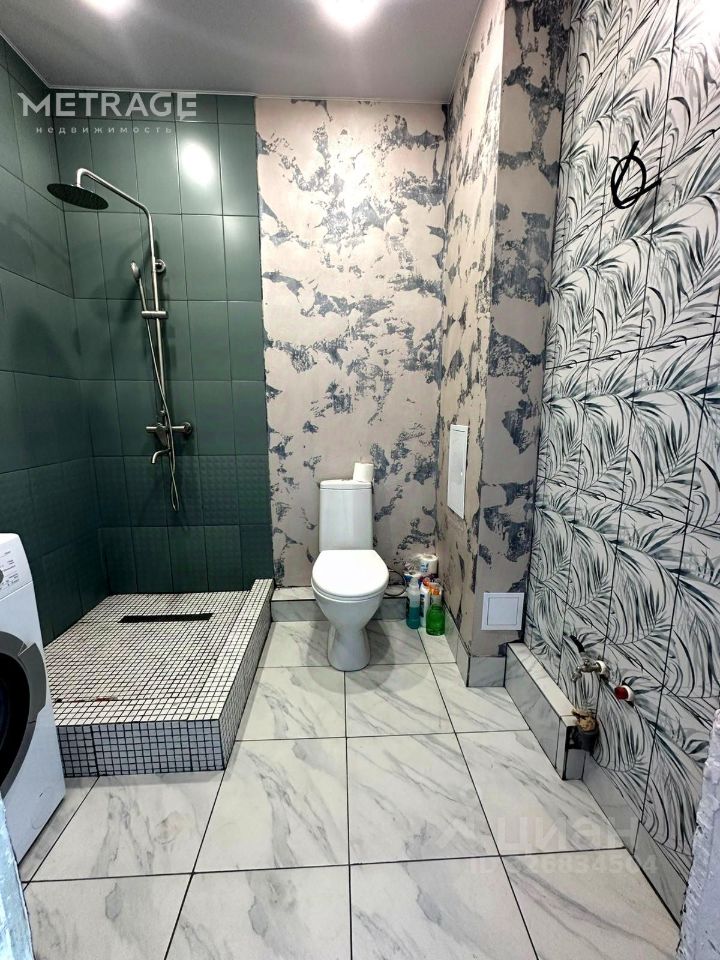 В квартире выполнен качественный ремонт : на полу ламинат ,обои под покраску, натяжной потолок, санузел облицован керамогранитом ,установлены унитаз и душевая ,есть стиральная машина.