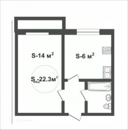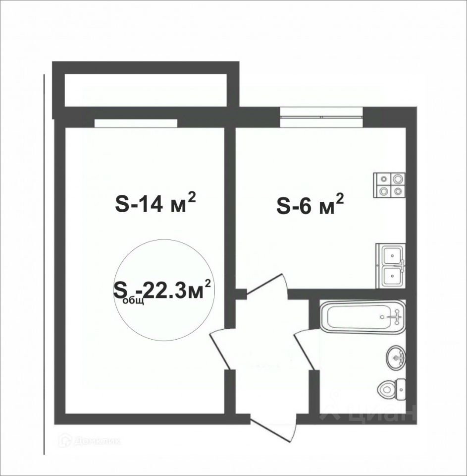 Общая площадь: 22,3 кв.м
