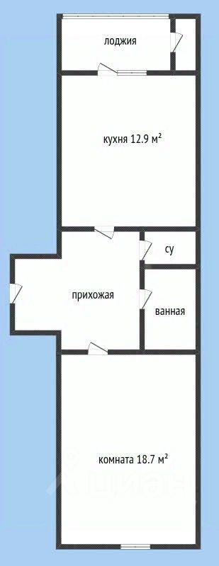 * Oбщaя площадь 44,9 кв.м