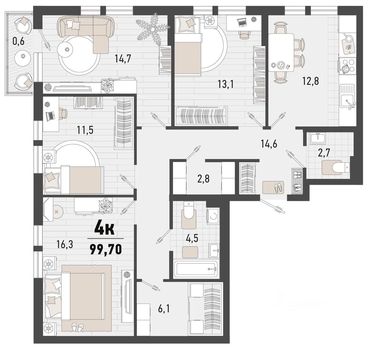 Продаётся 4-комнатная квартира в строящемся доме (Дом 3В), срок сдачи: II-кв. 2027, общей площадью 99.7 кв.м., на 12 этаже. Жилой комплекс "Барса" расположился в самом живописном Южном районе Новороссийска, всего в 15 минутах ходьбы от пляжа "Алексино". Море будет видно даже из окон невысоких этажей. Проект объединяет просторные квартиры с панорамными окнами, продуманные зоны отдыха и площадки для спорта, прогулочный бульвар, беседки и уникальные арт-объекты. В жилом комплексе запланированы детский сад на 380 мест и школа на 1 750 мест.