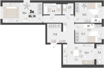 Продаётся 3-комнатная квартира в строящемся доме (Дом 4В), срок сдачи: II-кв. 2027, общей площадью 83.9 кв.м., на 2 этаже. Жилой комплекс "Барса" расположился в самом живописном Южном районе Новороссийска, всего в 15 минутах ходьбы от пляжа "Алексино". Море будет видно даже из окон невысоких этажей. Проект объединяет просторные квартиры с панорамными окнами, продуманные зоны отдыха и площадки для спорта, прогулочный бульвар, беседки и уникальные арт-объекты. В жилом комплексе запланированы детский сад на 380 мест и школа на 1 750 мест.