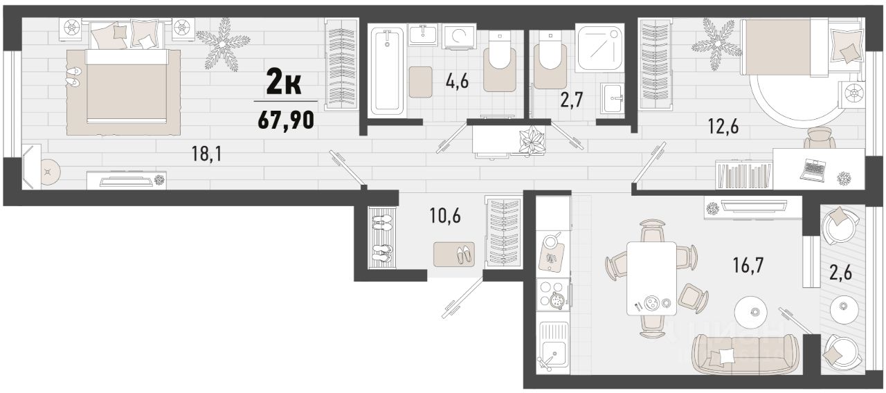 Продаётся 2-комнатная квартира в строящемся доме (Дом 4В), срок сдачи: II-кв. 2027, общей площадью 66.6 кв.м., на 2 этаже. Жилой комплекс "Барса" расположился в самом живописном Южном районе Новороссийска, всего в 15 минутах ходьбы от пляжа "Алексино". Море будет видно даже из окон невысоких этажей. Проект объединяет просторные квартиры с панорамными окнами, продуманные зоны отдыха и площадки для спорта, прогулочный бульвар, беседки и уникальные арт-объекты. В жилом комплексе запланированы детский сад на 380 мест и школа на 1 750 мест.