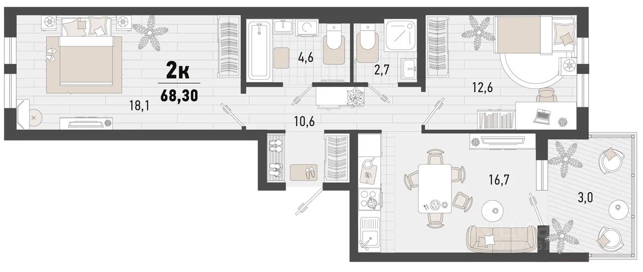 Продаётся 2-комнатная квартира в строящемся доме (Дом 4В), срок сдачи: II-кв. 2027, общей площадью 68.3 кв.м., на 5 этаже. Жилой комплекс "Барса" расположился в самом живописном Южном районе Новороссийска, всего в 15 минутах ходьбы от пляжа "Алексино". Море будет видно даже из окон невысоких этажей. Проект объединяет просторные квартиры с панорамными окнами, продуманные зоны отдыха и площадки для спорта, прогулочный бульвар, беседки и уникальные арт-объекты. В жилом комплексе запланированы детский сад на 380 мест и школа на 1 750 мест.