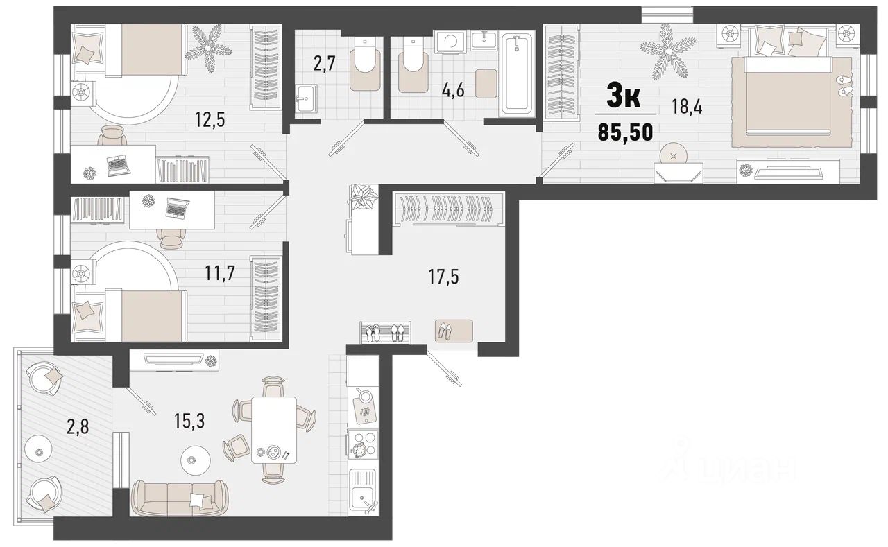 Продаётся 3-комнатная квартира в строящемся доме (Дом 3В), срок сдачи: II-кв. 2027, общей площадью 85.5 кв.м., на 6 этаже. Жилой комплекс "Барса" расположился в самом живописном Южном районе Новороссийска, всего в 15 минутах ходьбы от пляжа "Алексино". Море будет видно даже из окон невысоких этажей. Проект объединяет просторные квартиры с панорамными окнами, продуманные зоны отдыха и площадки для спорта, прогулочный бульвар, беседки и уникальные арт-объекты. В жилом комплексе запланированы детский сад на 380 мест и школа на 1 750 мест.