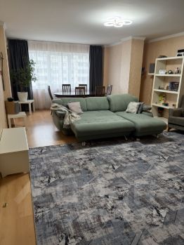 Продается просторная трехкомнатная квартира площадью 110.4 кв. м на 5-м этаже десятиэтажного монолитного дома, построенного в 2000 году. Жилая площадь составляет 75.6 кв. м, а кухня — 10.1 кв. м, что идеально подходит для семейных ужинов и приема гостей. Высота потолков — 2.7 метра, создающая ощущение простора. Окна выходят на обе стороны: улицу и тихий двор, поэтому в квартире много естественного света.