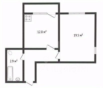 * Oбщaя площадь 43.7 кв.м