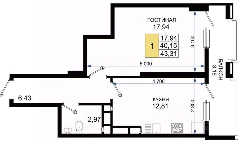 43,3 м²
