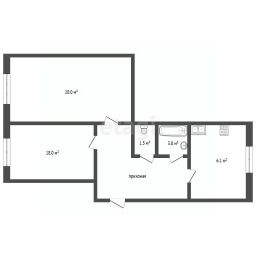 Общая площадь 46 кв.м.Жилая площадь 38 кв.м.Кухня - 6,1кв.м.