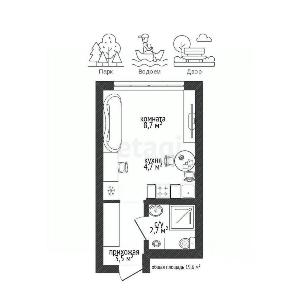 В шаговой доступности будет Школа, Детские сады, Больница