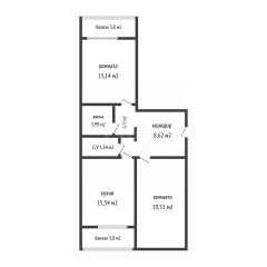 Простор: Общая площадь 61,2 м², высокие потолки 2,8 м добавляют воздуха.