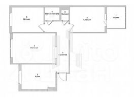 Общая площадь квартиры 62.6 кв.м, жилая площадь 38.7кв.м