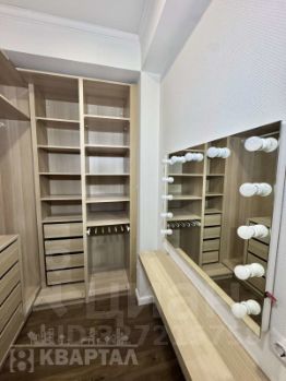 • В гардеробной - система хранения и туалетный столик с подсветкой.