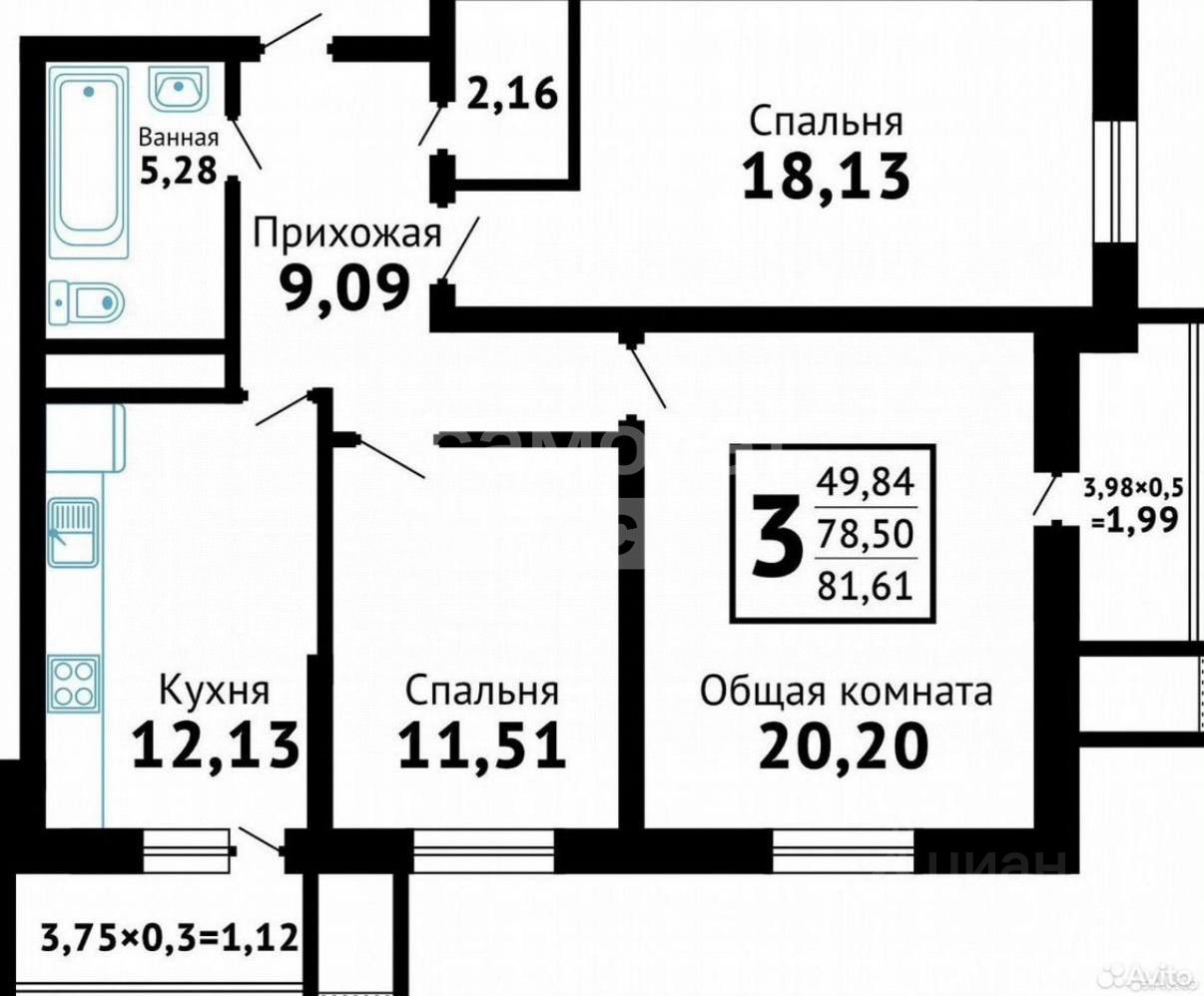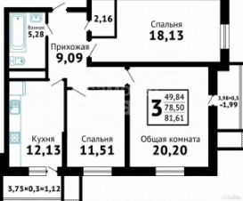 Общая площадь: 87,8 кв.м.