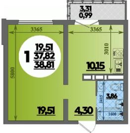 Общая площадь38,81 м²