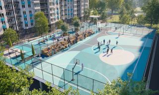 Во дворах реализована концепция "активити-парка" — это большое зелёное пространство для отдыха и занятий спортом: