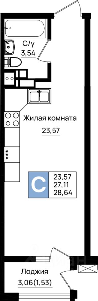 Общая площадь28,64 м²