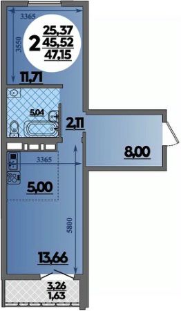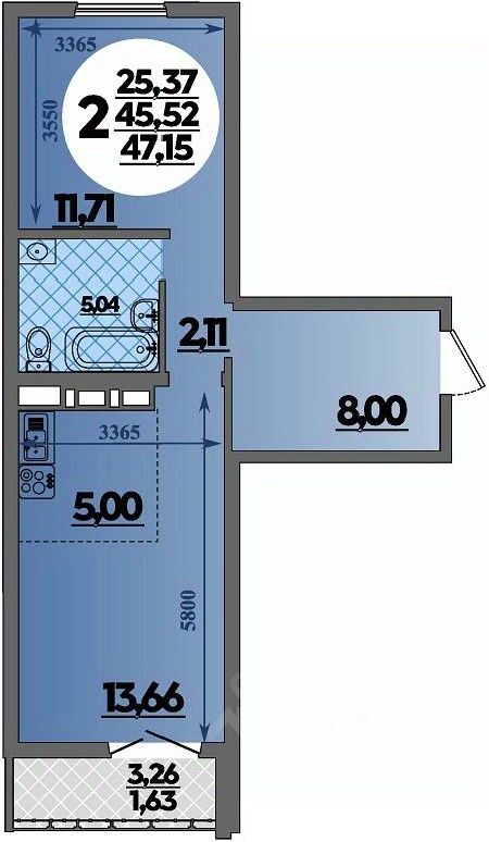 • Санузел под ключ: ванна с декоративным экраном, удобная раковина с пьедесталом, смесители, полотенцесушитель. На полу керамогранит