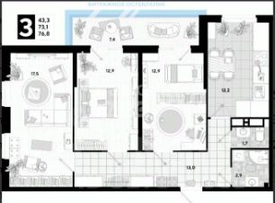 Арт. 118243174 В продаже 3-комнатная квартира в монолитном доме, расположенном в Южном районе г. Новороссийска.
