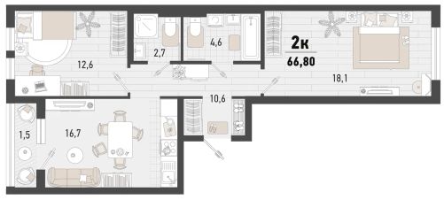 Общая площадь66,8 м²