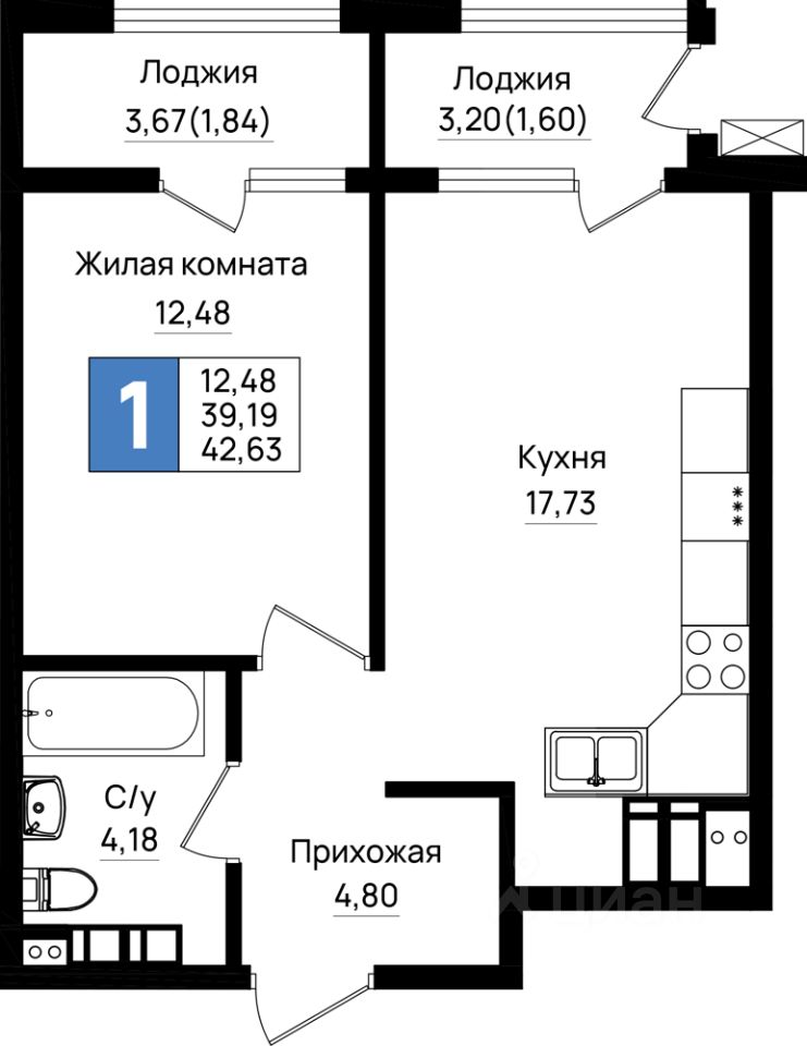 Общая площадь42,63 м²