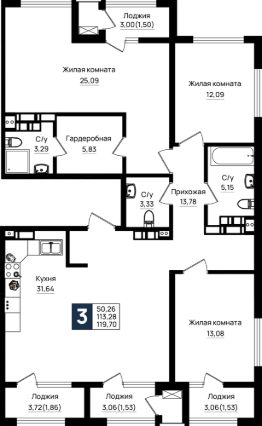 Общая площадь119,7 м²