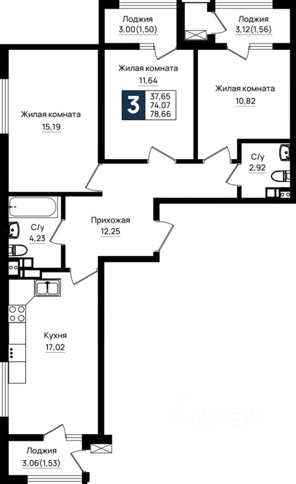 Общая площадь78,66 м²