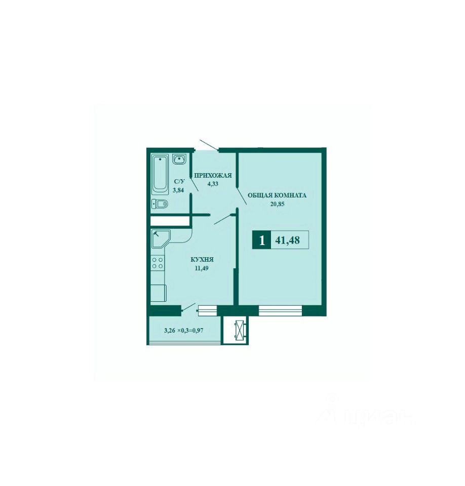 Общая площадь41,48 м²
