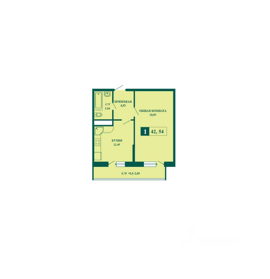Общая площадь42,54 м²