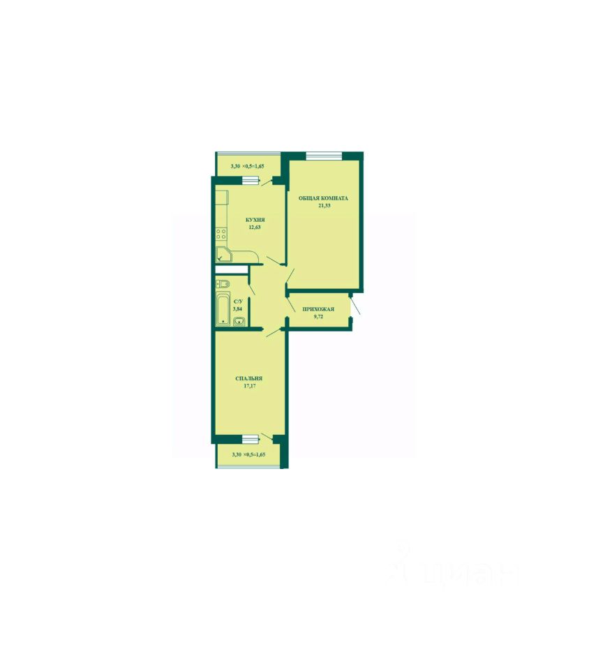 Площадь кухни12,6 м²