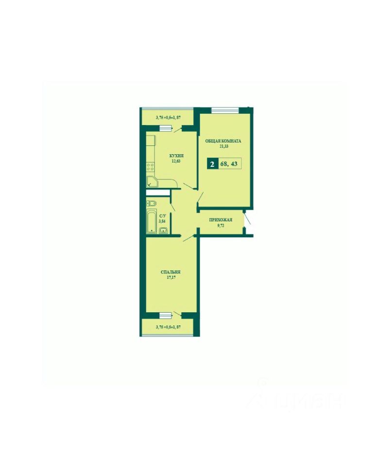 Общая площадь68,43 м²
