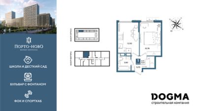 В продаже 1-комнатная квартира от застройщика! ЖК "Порто-Ново" г. Новороссийск, Литер 1