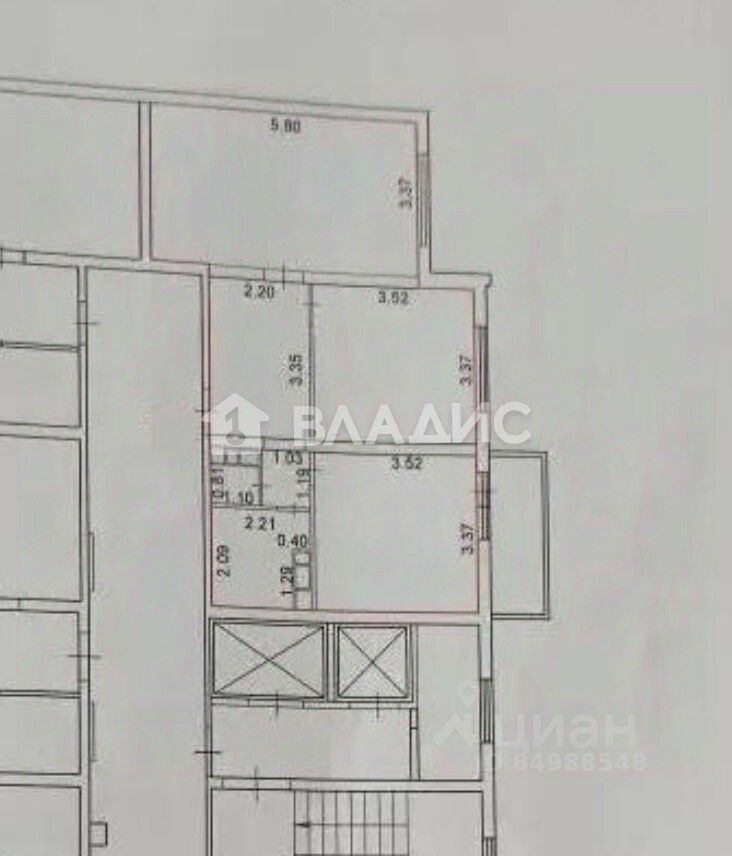 Общая площадь -56.9 кв.м