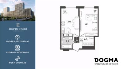 В продаже 1-комнатная квартира от застройщика! ЖК "Порто-Ново" г. Новороссийск, Литер 5