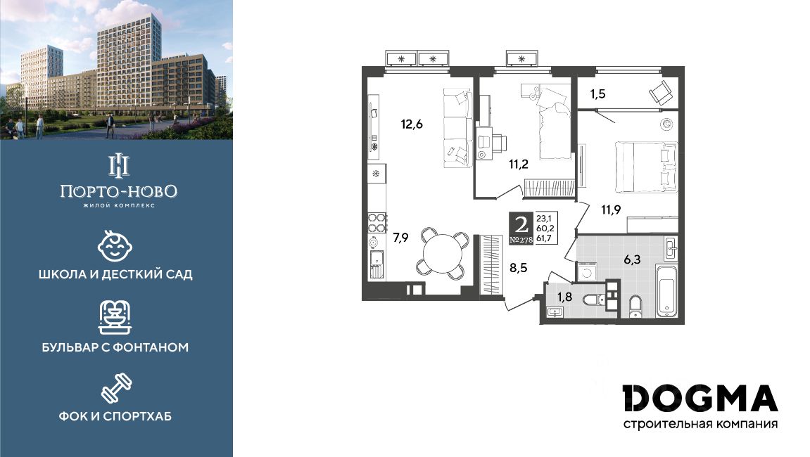 В продаже 2-комнатная квартира от застройщика! ЖК "Порто-Ново" г. Новороссийск, Литер 10 Срок сдачи: 4 кв. 2026, общей площадью 61.7 кв.м., на 9 этаже. ЖК "Порто-Ново" — новый порт для комфортной жизни. 10 домов переменной этажности с террасами на десятом этаже. Дворовые пространства в виде "портов" со своей инфраструктурой: детские и спортивные зоны легко уживаются с зонами отдыха взрослых, а прогулочный бульвар с фонтаном придаёт кварталу ощущение полноты и гармонии жизни. Школа на 1 100 мест, детский сад на 260 мест и ФОК дополняют инфраструктуру всего микрорайона и создают причал для новых возможностей. • Уникальная стильная архитектура • Просторные лобби с колясочными и зонами ожидания • Прогулочный бульвар с фонтаном • Детские площадки из натуральных безопасных материалов • Места для спокойного отдыха во дворе со скамейками и крытыми зонами • Подземный паркинг с видеонаблюдением и прямым доступом на лифте • Квартиры с готовой отделкой • Зона для гриля • Торговая аллея • Собственная остановка общественного транспорта • Резервные накопители воды Приобрести квартиру можно одним из способов: -субсидированная семейная ипотека 4,5 % на весь срок -рассрочка до конца строительства -оплата наличными -дистанционная покупка Позвоните сейчас и забронируйте квартиру со скидкой!
