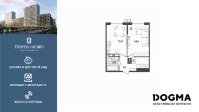В продаже 1-комнатная квартира от застройщика! ЖК "Порто-Ново" г. Новороссийск, Литер 6
