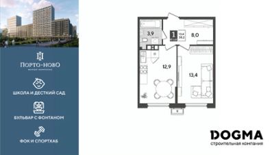 В продаже 1-комнатная квартира от застройщика! ЖК "Порто-Ново" г. Новороссийск, Литер 6